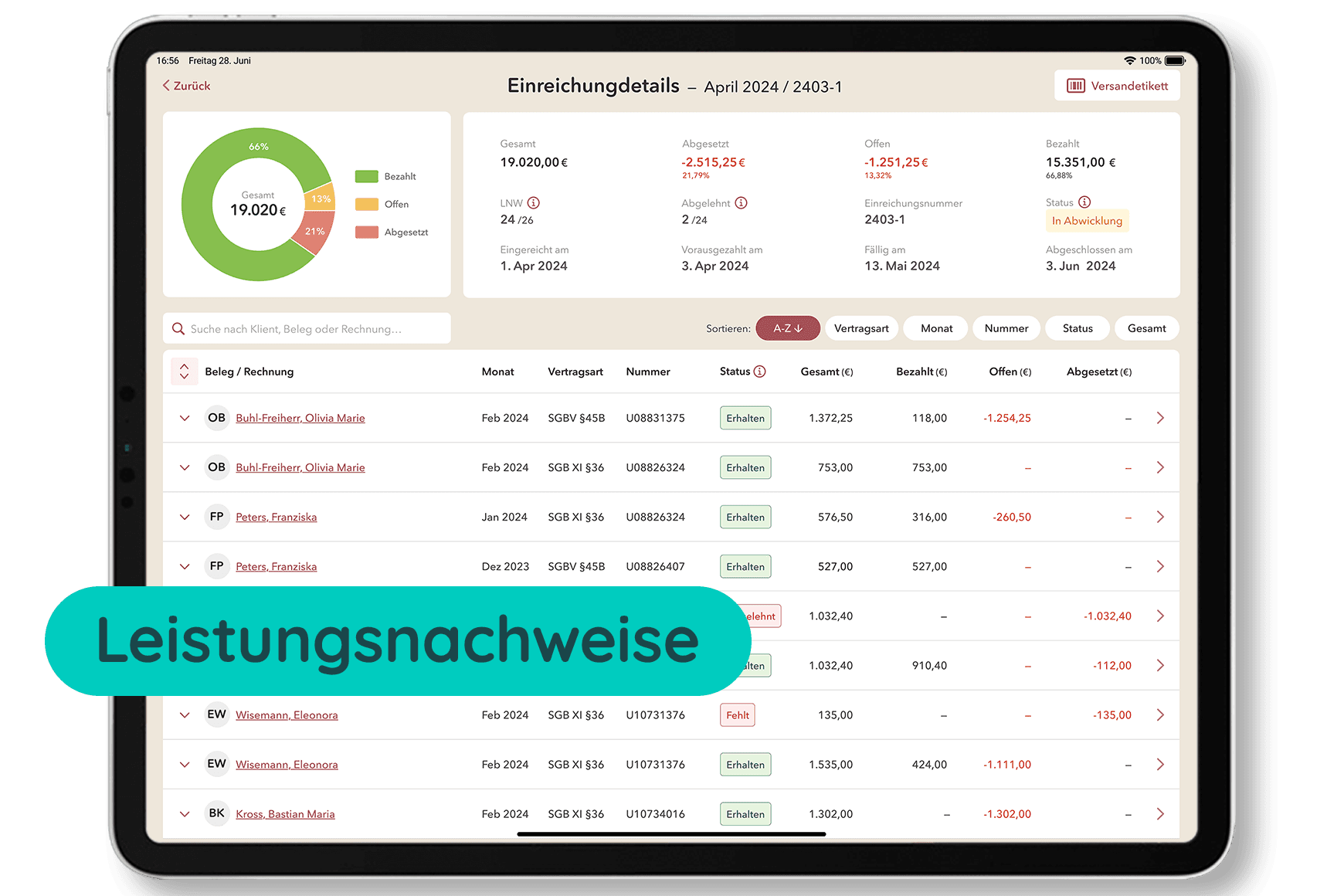 - Automatisierte Abrechnung: Bärcare sorgt dafür, dass ausschließlich regelkonforme Leistungen geplant und automatisch korrekt abgerechnet werden. Das reduziert Absetzungen auf bis zu unter 1 % und spart wertvolle Zeit bei der Nacharbeit.