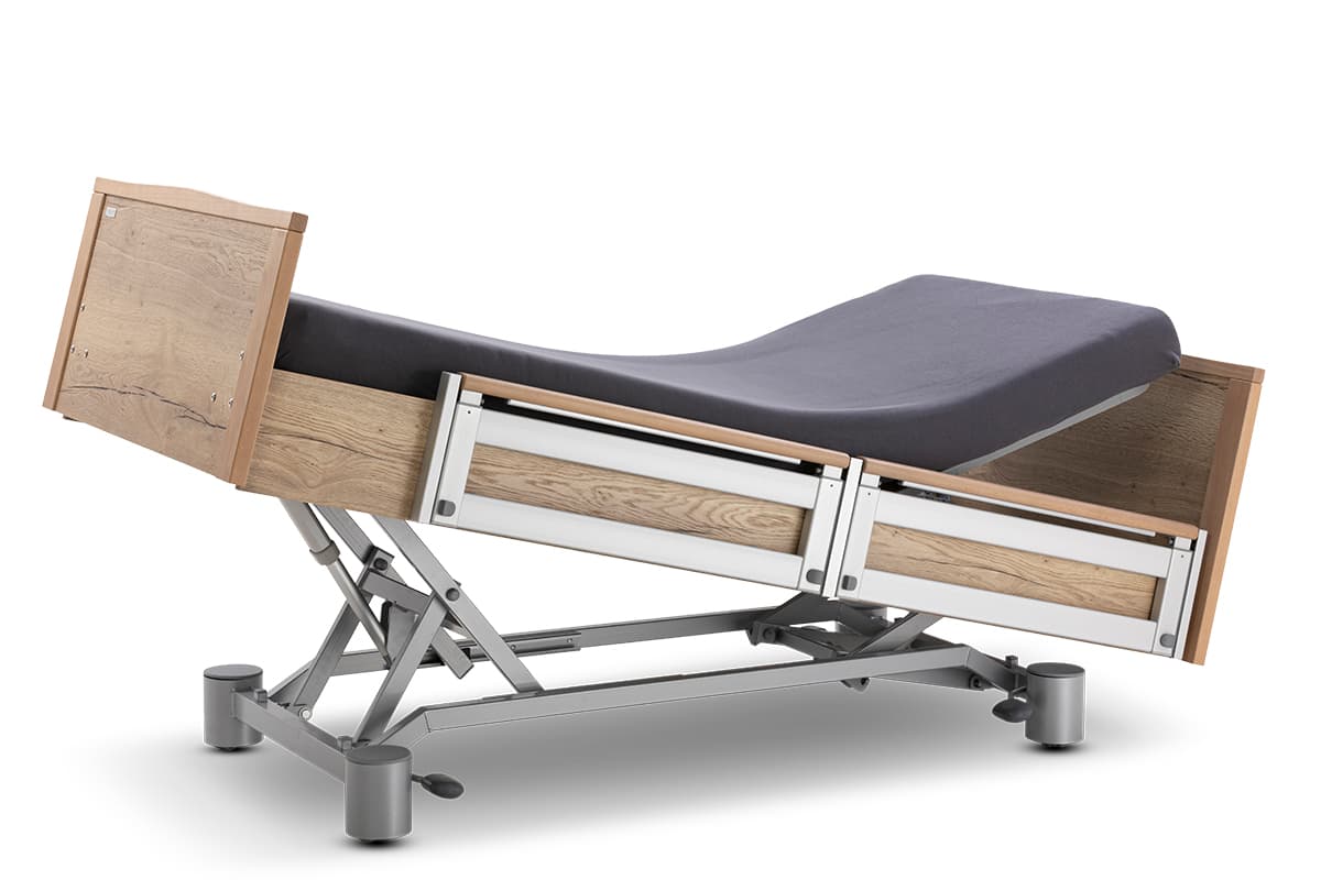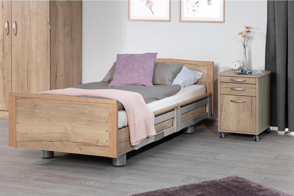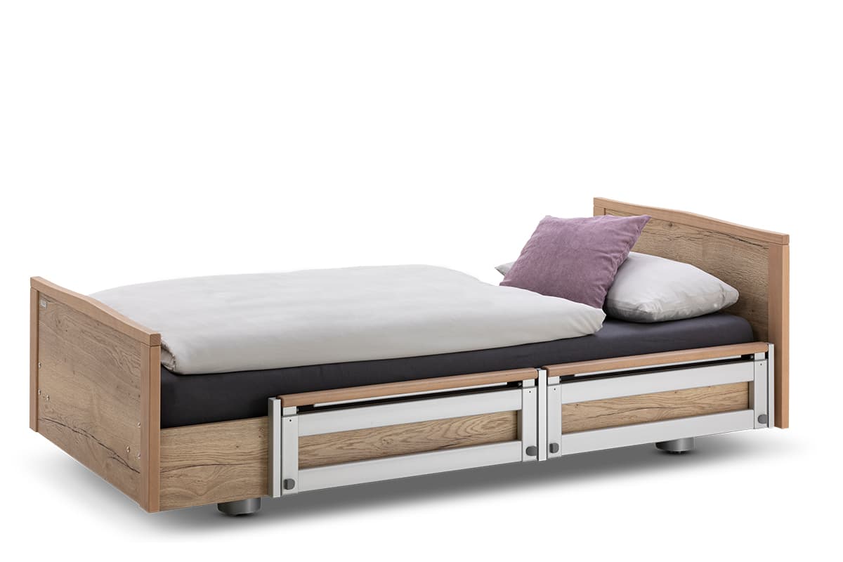 Damit nicht genug: In Punkto Individualität sind beim Pflegebett IMPULSE kaum Grenzen gesetzt. Wählen Sie aus einer Vielfalt an Holzdekoren die zu Ihrem Raumkonzept passende Variante. Konfigurieren Sie IMPULSE nach Ihrem Anforderungsprofil und evaluieren Sie den Mehrwert unserer Niedrigbetten zur Reduktion freiheitsentziehender Maßnahmen – für mehr Freiheit und Selbstbestimmung von Bewohnerinnen und Bewohnern.
